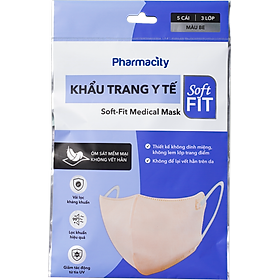 ✨Khẩu trang y tế Soft-Fit Pharmacity (Gói 5 cái) màu be - 3 lớp