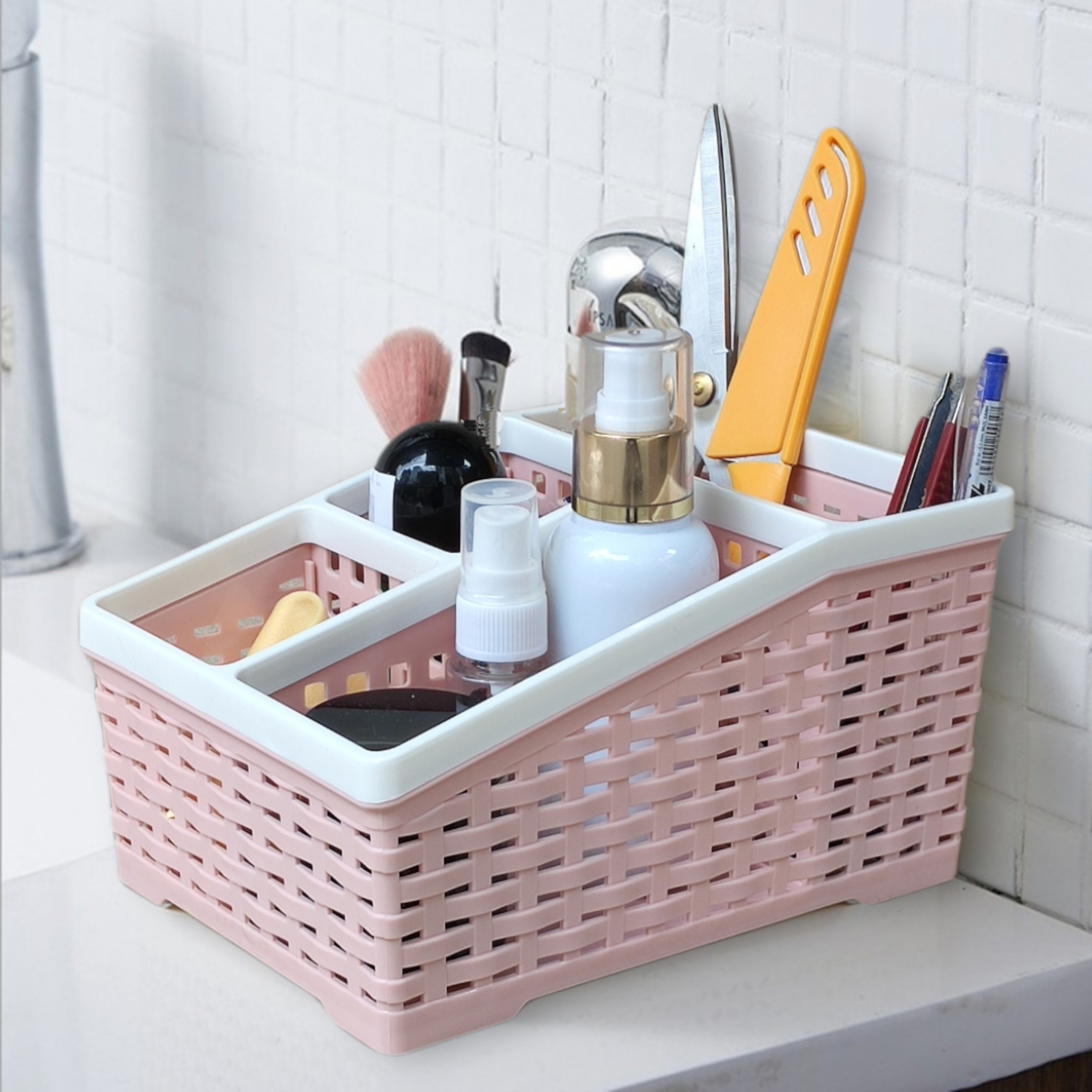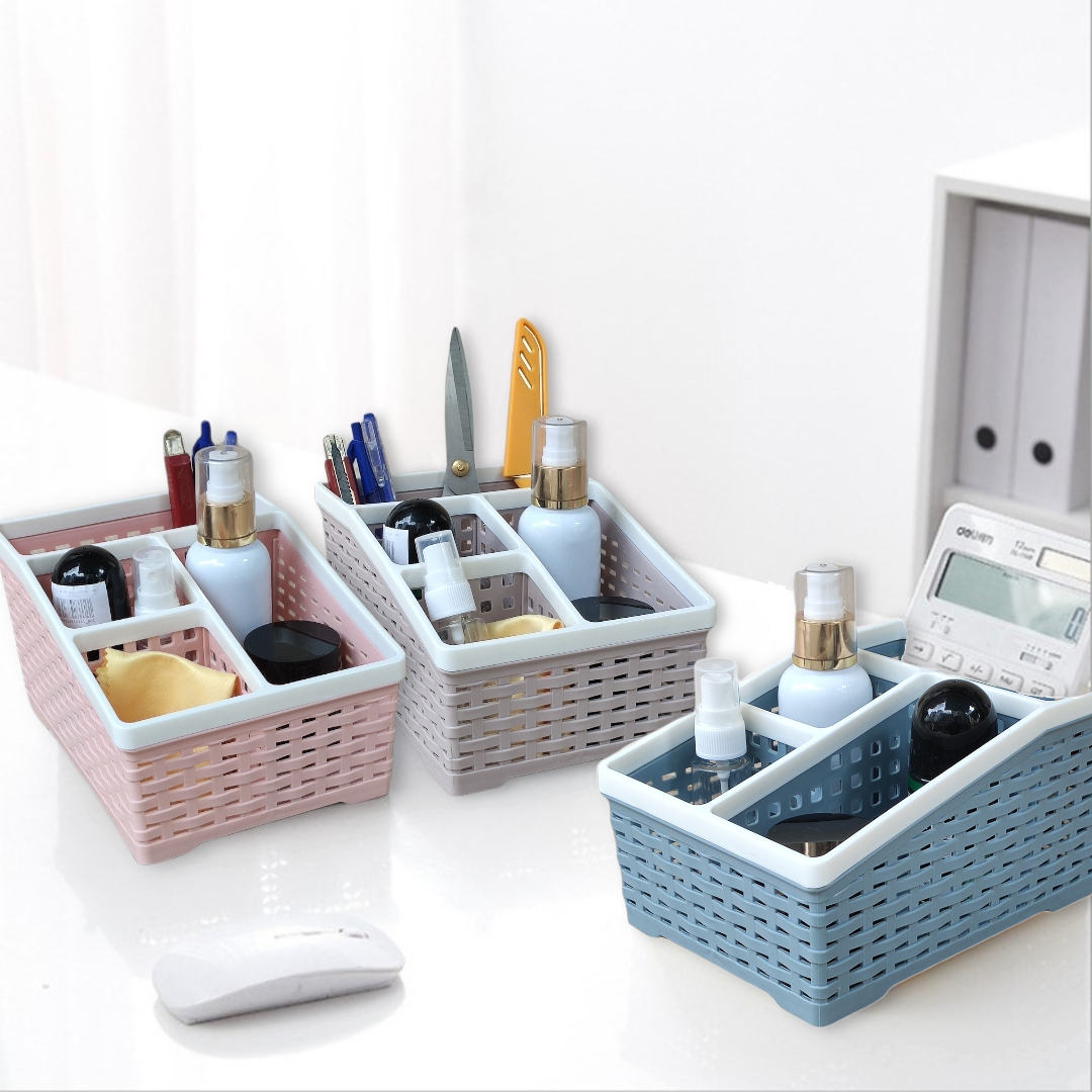 Khay nhựa tiện ích 4 ngăn để bàn đựng bút, đồ dùng đa năng