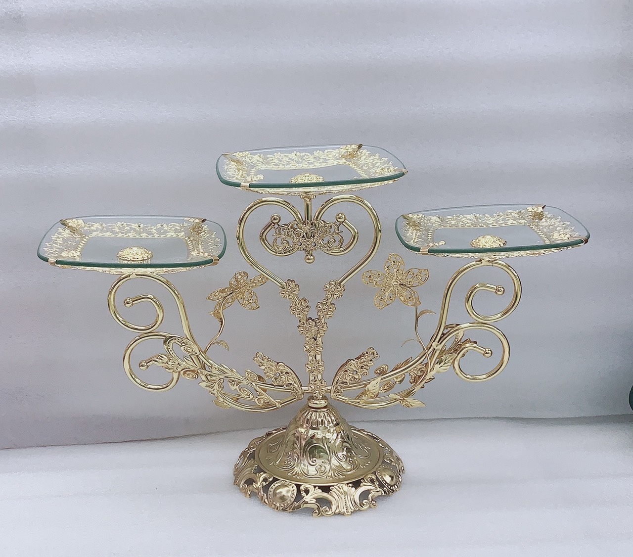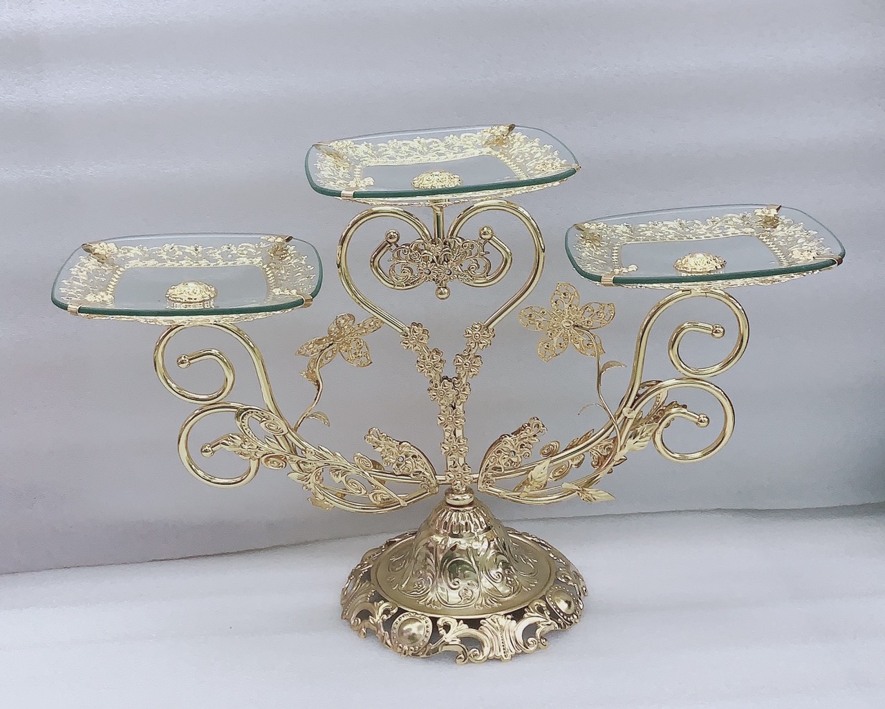 ✨KHAY ĐỰNG BÁNH KẸO HOA QUẢ THỦY TINH 3 TẦNG KHUNG KIM LOẠI - VD28
