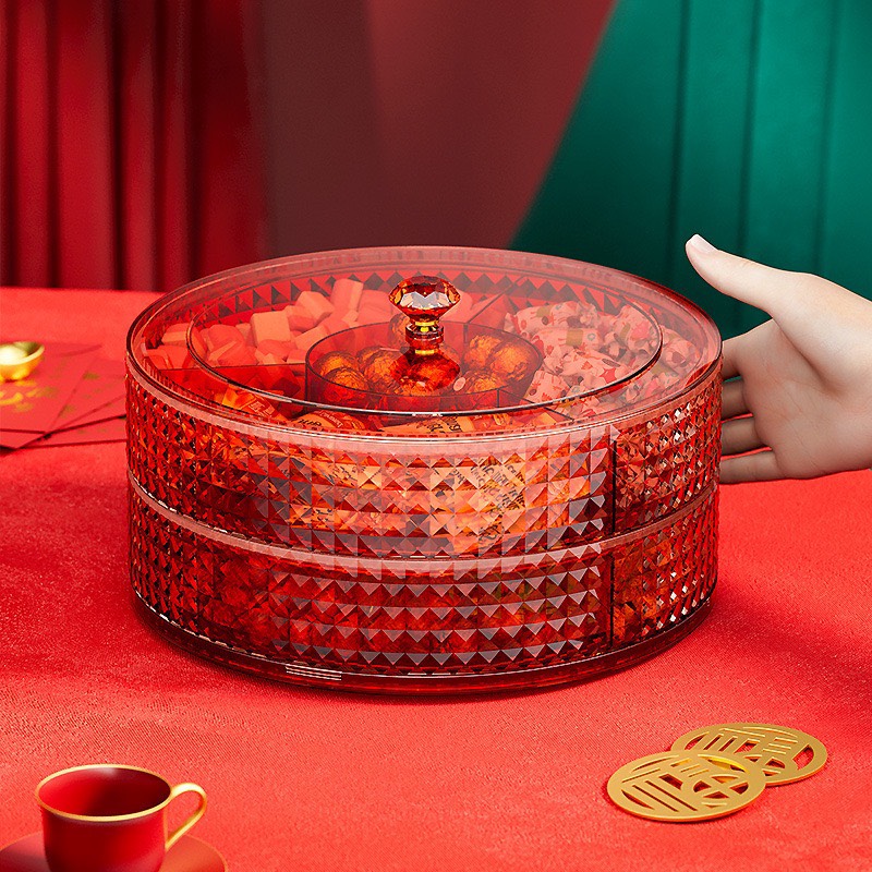 khay đựng mứt tết bánh kẹo ngày tết 2 tầng xoay 360