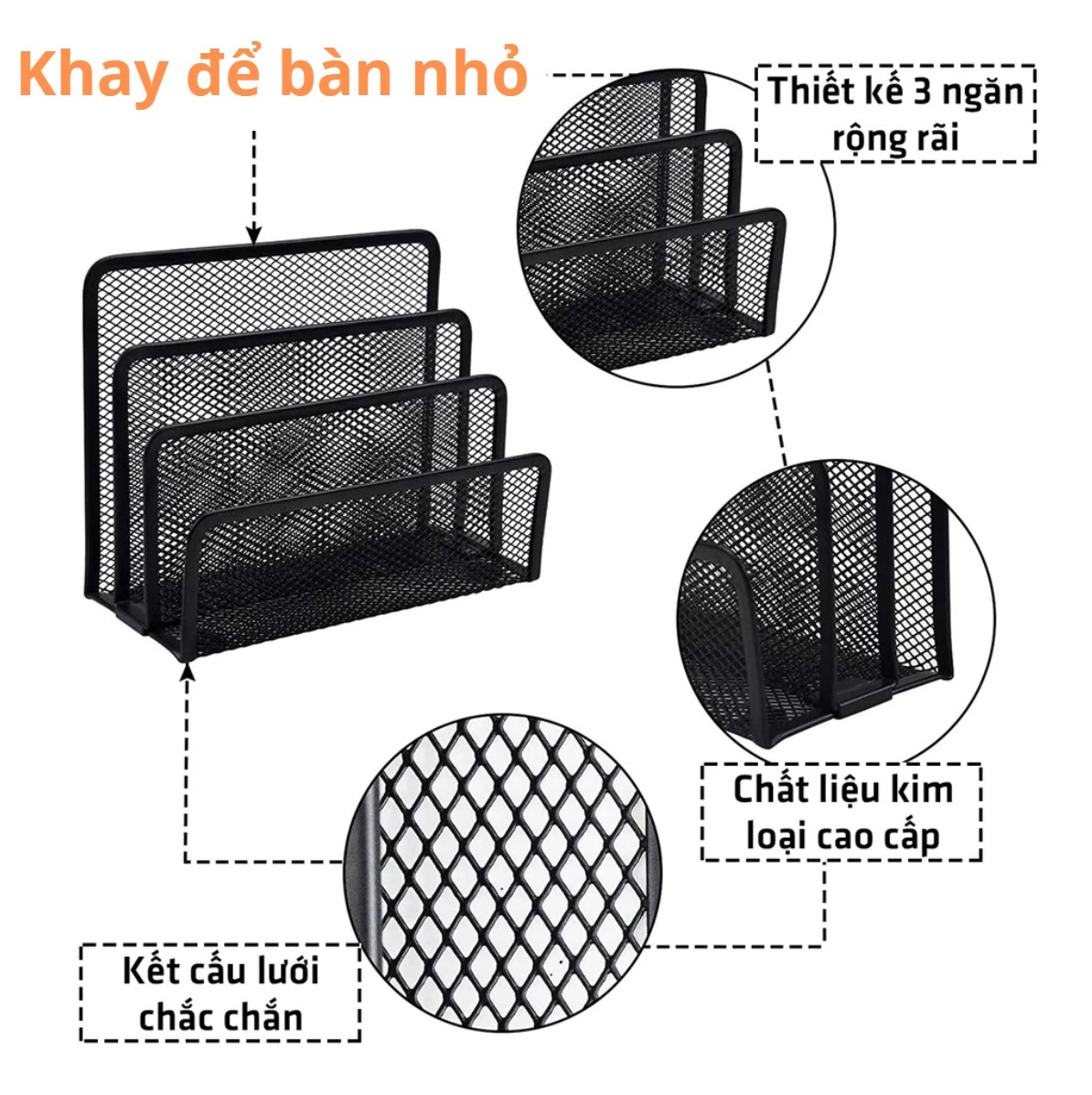 ✨Khay Kệ Đựng Tài Liệu ĐỂ BÀN 3 Ngăn, Kệ Khay Lưới Kim Loại Đựng Hồ Sơ Giấy Tờ Văn Phòng, Học Sinh