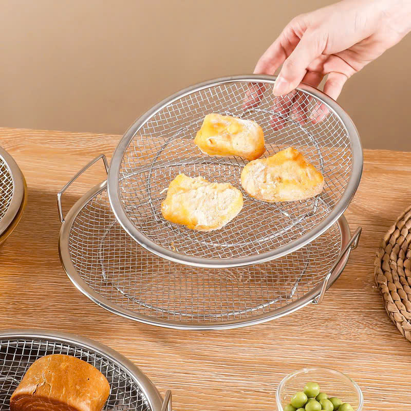 Set Rây Lưới Lọc Dầu Chiên Thực Phẩm Khay Kèm Vỉ Lưới Lọc Kèm Vỉ Hấp Ráo Dầu Bằng Inox 304