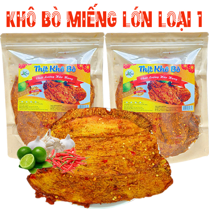Khô bò được làm từ 100% thịt bò tươi Không chất bảo quản độc hại Được công nhận là Hàng Việt Nam Chất Lương Cao do người tiêu dùng bình chọn Được chứng nhận An