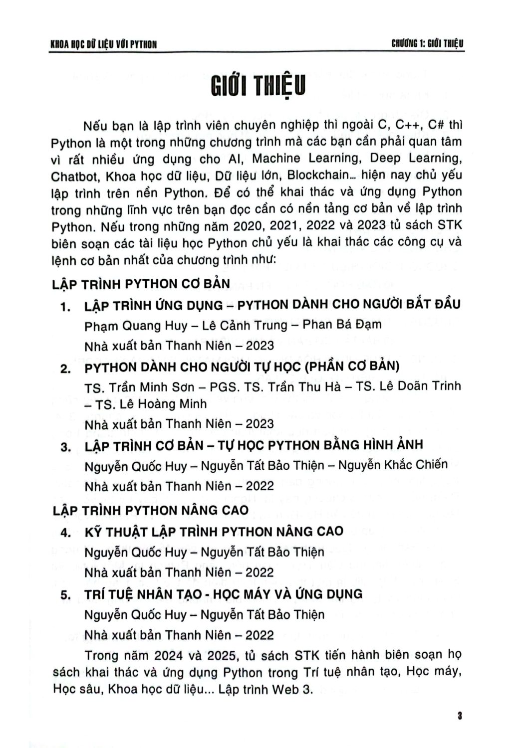 Khoa Học Dữ Liệu Với Python Sách Khoa học dữ liệu với Python được trình bày với 424 trang khổ 16 x 24 cm qua 7 chương và 1 phụ lục: Chương 1: Giới thiệu