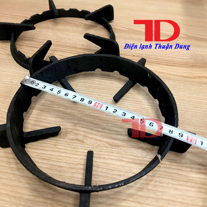 Kiềng chắn gió [ GANG ĐÚC NGUYÊN KHỐI ] dùng cho các loại bếp gas 5 chân - Điện lạnh Thuận Dung BỘ KIỀNG GANG ĐÚC SIÊU BỀN Dùng được cho bếp ga kiềng 5 chân giống kích thước Tác dụng ống gió : Vừa đun nấu vừa bật quạt thoải mái mà không sợ tắt lửa gây nguy hiểm khi sử dụng ống nóng : Chất liệu gang nên ngăn ngừa bức xạ nhiệt thoát ra ngoài gây nóng khi đun nấu ết kiệm gas : Tiết kiệm gas đến 30% so với các loại bếp sử dụng kiềng thường ết kế rất chắc chắn nên không sợ kiềng bị gãy khi đặt nồi lớn Kiềng chắn gió bếp gas dương Phù hợp với hầu hết các loại bếp gas dương mặt kính Chất liệu không hoen gỉ, chịu lực - chịu nhiệt tốt, không gây trơn trượt khi đặt nồi chảo lên. Kích thước: D= 186 mm + Vừa làm kiềng để nâng đỡ trọng lượng nồi,chảo. + Lại vừa thích hợp làm kiềng chắn gió, cản gió hiệu quả nhất, bạn có thể bật quạt khi nấu ăn mà không lo lửa bị tạt + Chất liệu đúc nguyên khối, siêu bền, chắc chắn, chịu lực - nhiệt độ cao. + Khi đun nấu ngọn lửa hội tụ nhiệt tối đa vào phần đáy nồi, tăng hiệu quả sử dụng vì chắn gió từ ngoài thổi vào. + Tiết kiệm ga hiệu quả, giúp nhanh chín thức ă