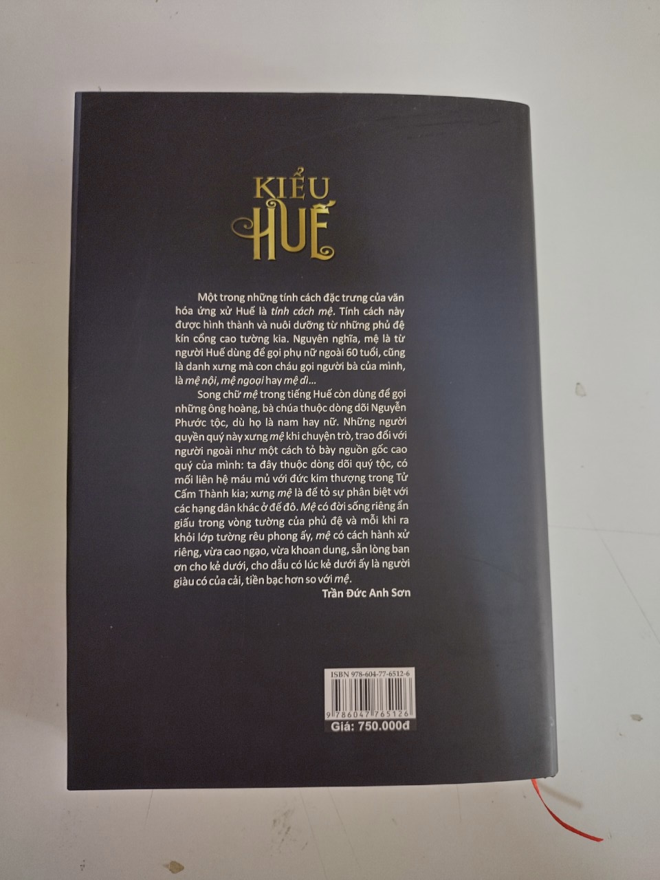Mua tại TiktokSách mới Kiểu Huế Tác giả: Trần Đức Anh Sơn Nxb Tổng hợp TP Hồ Chí Minh, phát hành vào 12/2021. Sách khổ 1827cm, (khổ như cuốn Từ điển nhà Nguyễn), bìa cứng có áo bìa, ruột in 4 màu, có 450 ảnh minh họa nội dung bài viết. Bản giới hạn đánh số Có ký tặng của tác giả. … Giới thiệu: Dưới đây là mục lục của sách, có bổ sung 12 bài, là những bài có đánh dấu (), so với bản in lần đầu: THAY LỜI TỰA LỄ NGHI & LỐI SỐNG Lễ hội cung đình triều Nguyễn Tết Huế Lễ tết ở Huế (*) Xuân du phương thảo địa Thu vàng xứ Huế Hoa của làng CHỐN Ở Phủ đệ - nơi lưu giữ Huế xưa Vương phủ của Thi Ông, Thi Bá Hồn Huế trong Lạc Tịnh Viên