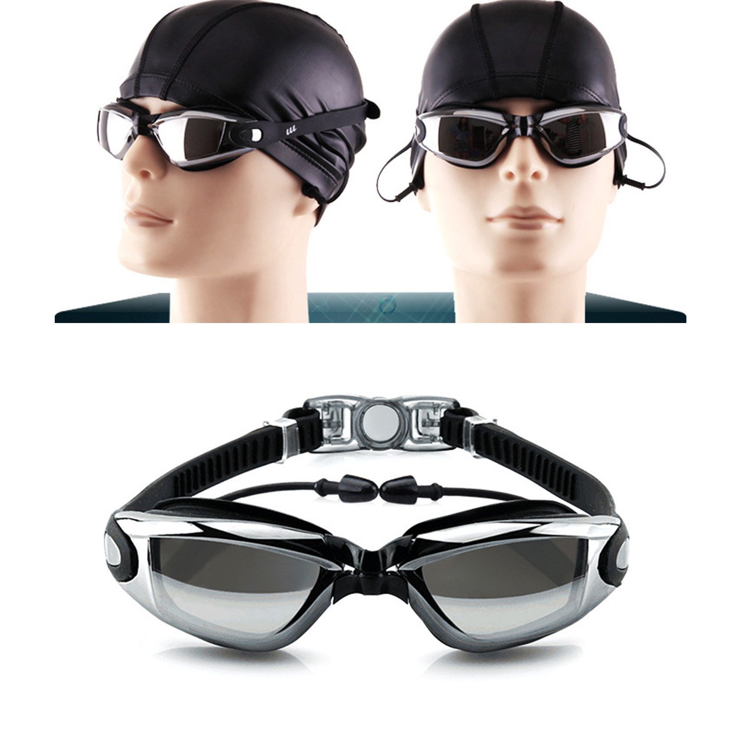 Kính bơi cận thị độ cận 5.0 độ có gắn nút bịt tai ngăn nước; mắt kiếng bơi chống tia UV, chống hấp hơi ĐẶC ĐIỂM: - Kính bơi với các độ cận: 1.5 -