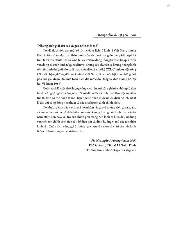 NỘI DUNG CHÍNH “Kinh tế Việt Nam: Thăng trầm và Đột phá” - cuốn sách được xuất bản lần đầu vào năm 2009, khi thế giới đang trong cuộc vận động để thoát khỏi