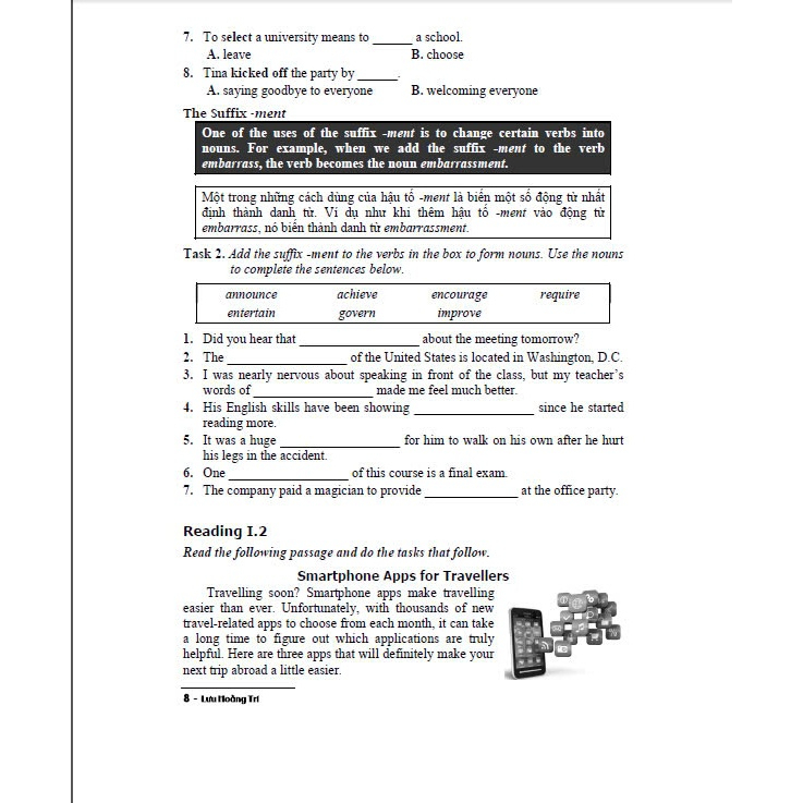 C. Vocabulary Practice (Luyện tập từ vựng) giúp học viên mở rộng vốn từ vựng, có kĩ năng đoán được từ mới dựa trên ngữ cảnh cũng như ôn luyện về căn ngữ, tiền tố, và hậu tố trong Tiếng Anh.