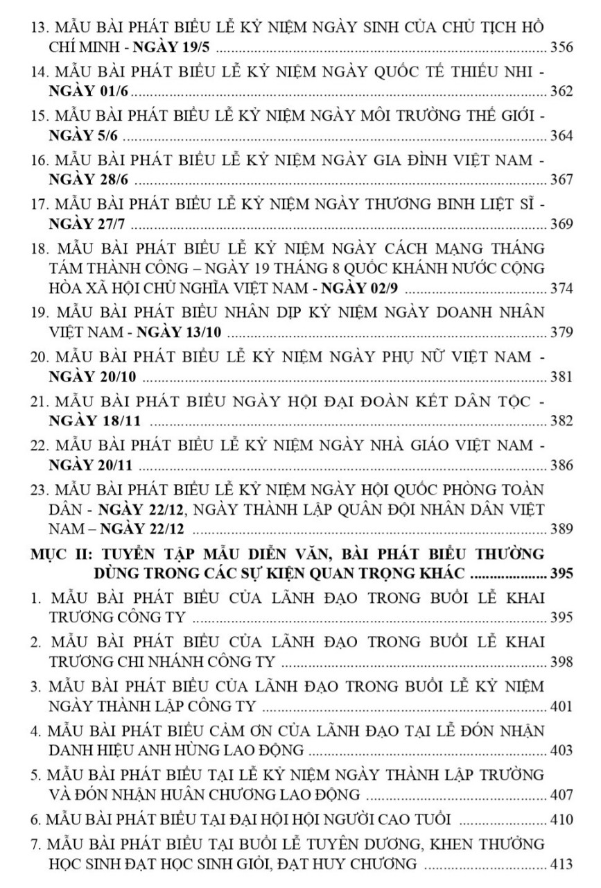 PHẦN V. TUYỂN TẬP CÁC MẪU DIỄN VĂN, BÀI PHÁT BIỂU THƯỜNG DÙNG HAY NHẤT