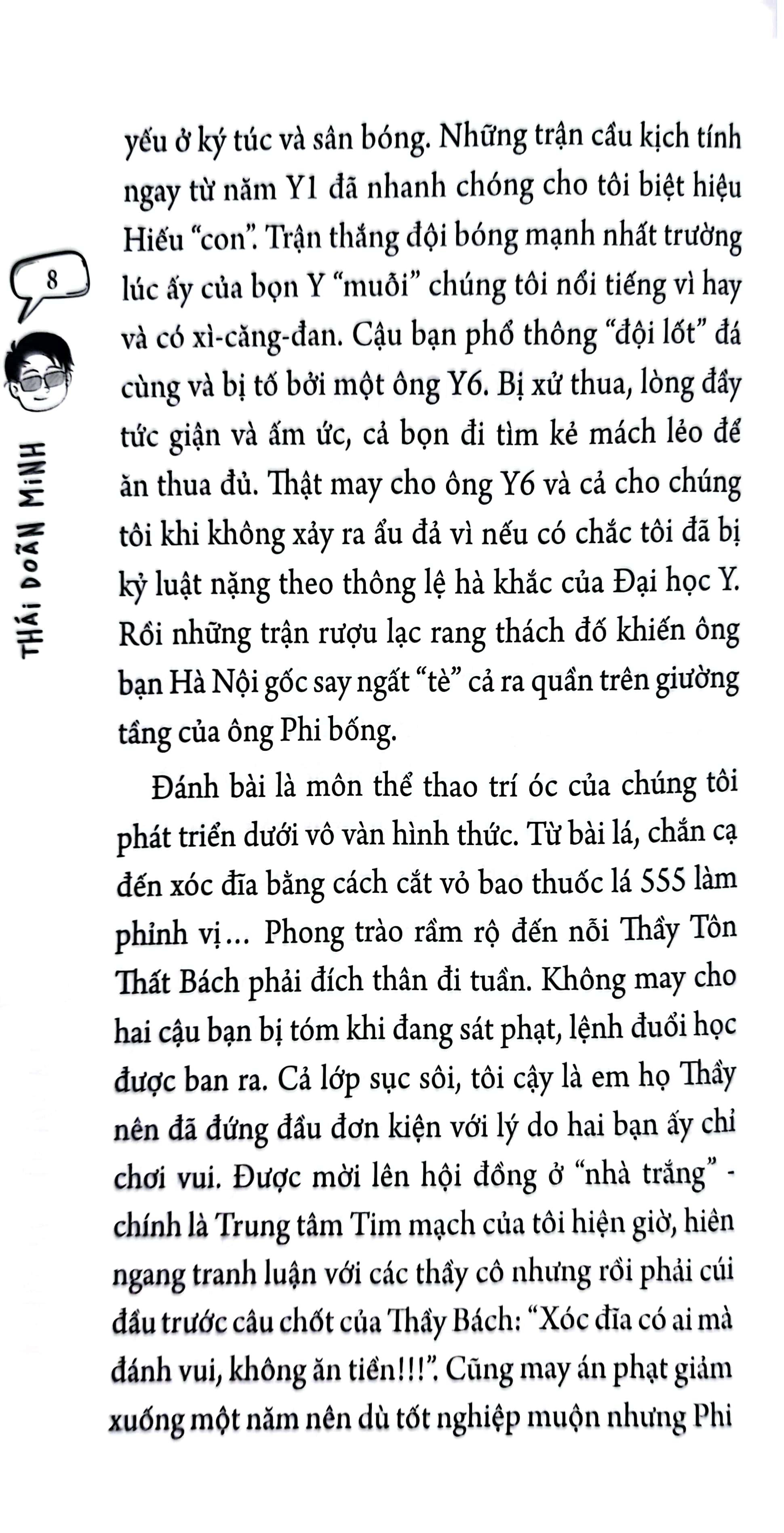 Cuốn sách này chắc chắn sẽ xóa bỏ những tiền sử định kiến về hình ảnh sinh viên Y đầu bù, mắt trố, thụ động cả ngày bên đèn sách. Thật không quá khi nói rằng tác giả đã phơi bày trần trụi tất cả những triệu chứng điển hình và không điển hình từ cấp độ cá thể đến quần thể của bao thế hệ sinh viên trường Đại học Y Hà Nội.