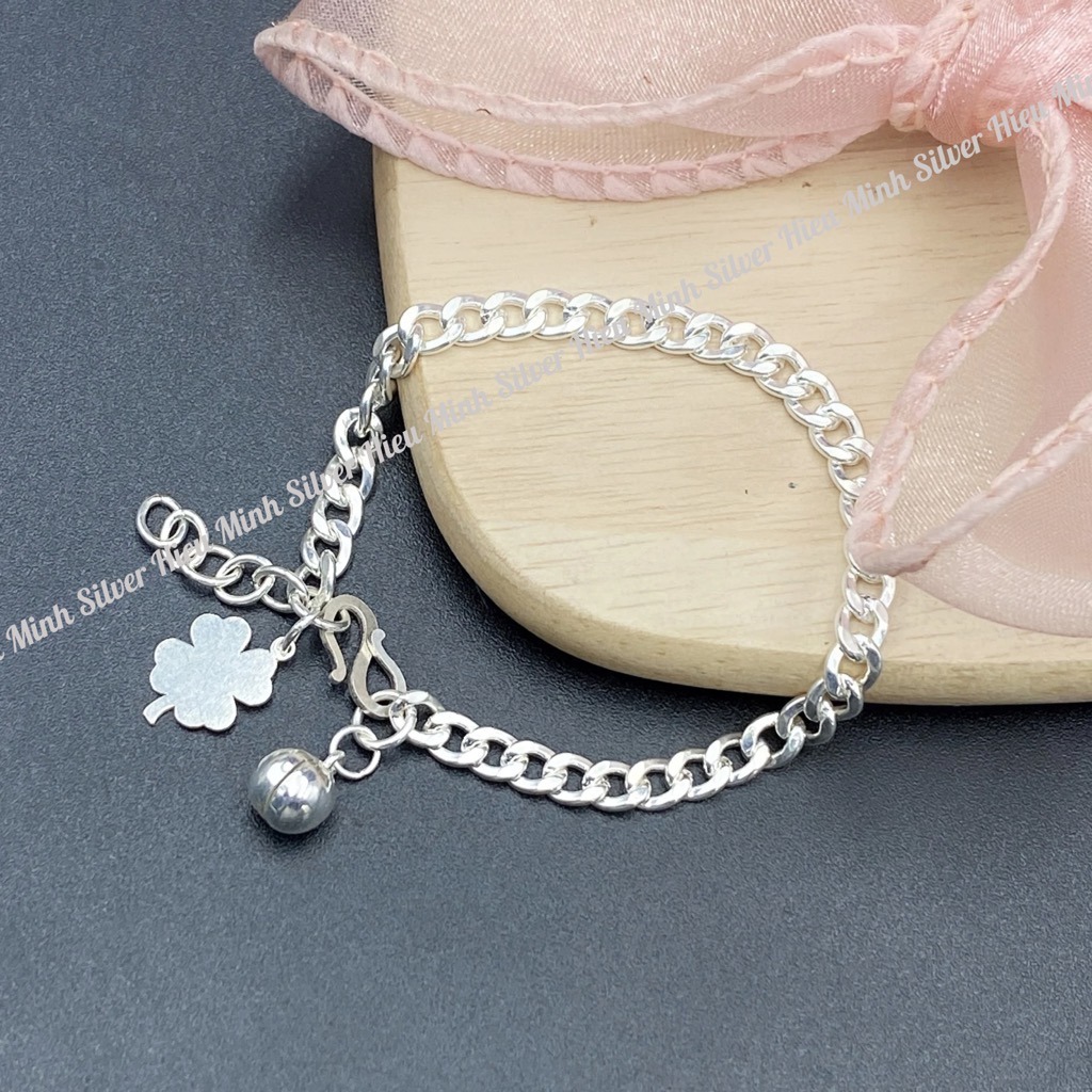 ✨Lắc Tay Cho Bé Bạc Ta Cỏ 4 Lá Chính Hãng Bạc Hiểu Minh LTE564
