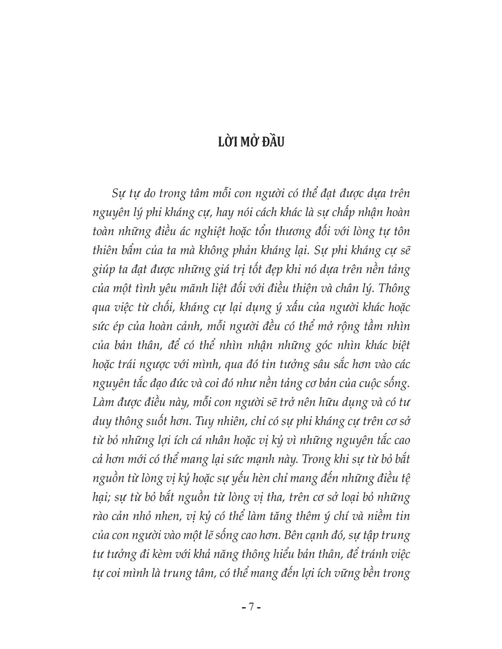 Mua tại TiktokTác phẩm “ Làm gì khi bạn luôn vội vã, lo lắng và dễ cáu giận” (Tên gốc: The Freedom of Life – Sự tự do của cuộc sống) đưa ra những nền tảng cơ bản của học thuyết phi kháng cự như một cách tiếp cận mới trong điều trị nhiều triệu chứng thần kinh phổ biến: mất ngủ, cảm giác bồn chồn, lo lắng hay cáu gắt; cùng với sự phân tích dựa trên nhiều ví dụ cụ thể về áp dụng sự phi kháng cự trong cuộc sống hằng ngày nhằm đạt được sự thanh thản trong tâm hồn và hạnh phúc trong cuộc sống.