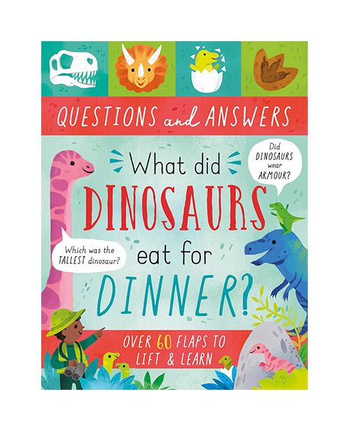 Large Question & Answer Flap Book -Dinosaurs Lift the flaps in this colourful book to take a journey back in time and learn about the weird and wonderful world of Dinosaurs, like which Dinosaurs ate