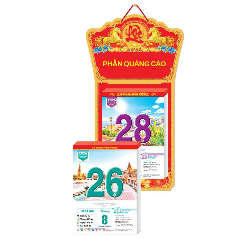 - Quyển Bloc lịch 2026 dùng gắn vào các loại bìa lịch treo tường, thay thế Bloc năm cũ. * QUY CÁCH BLOC LỊCH: - Chất lượng in công nghệ hiện đại, sắc nét, in