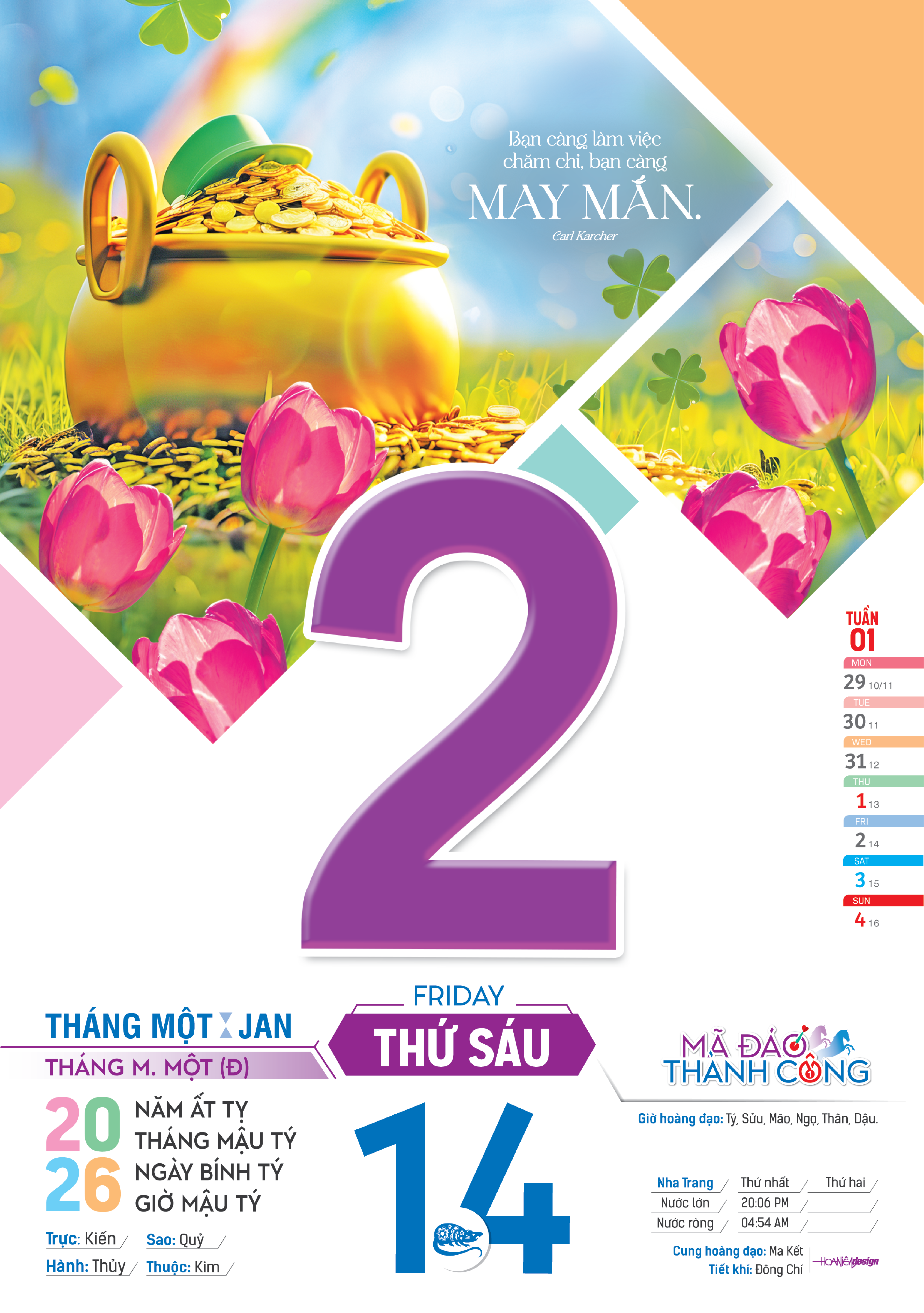 Lịch Bloc Cực Đại 2026 - Sắc Màu Thế Giới - Hạnh Phúc - Đại Việt Á DVA08 - Chữ Lộc - Lịch bloc giúp bạn nắm rõ ngày dương, ngày âm, tiết khí, giờ