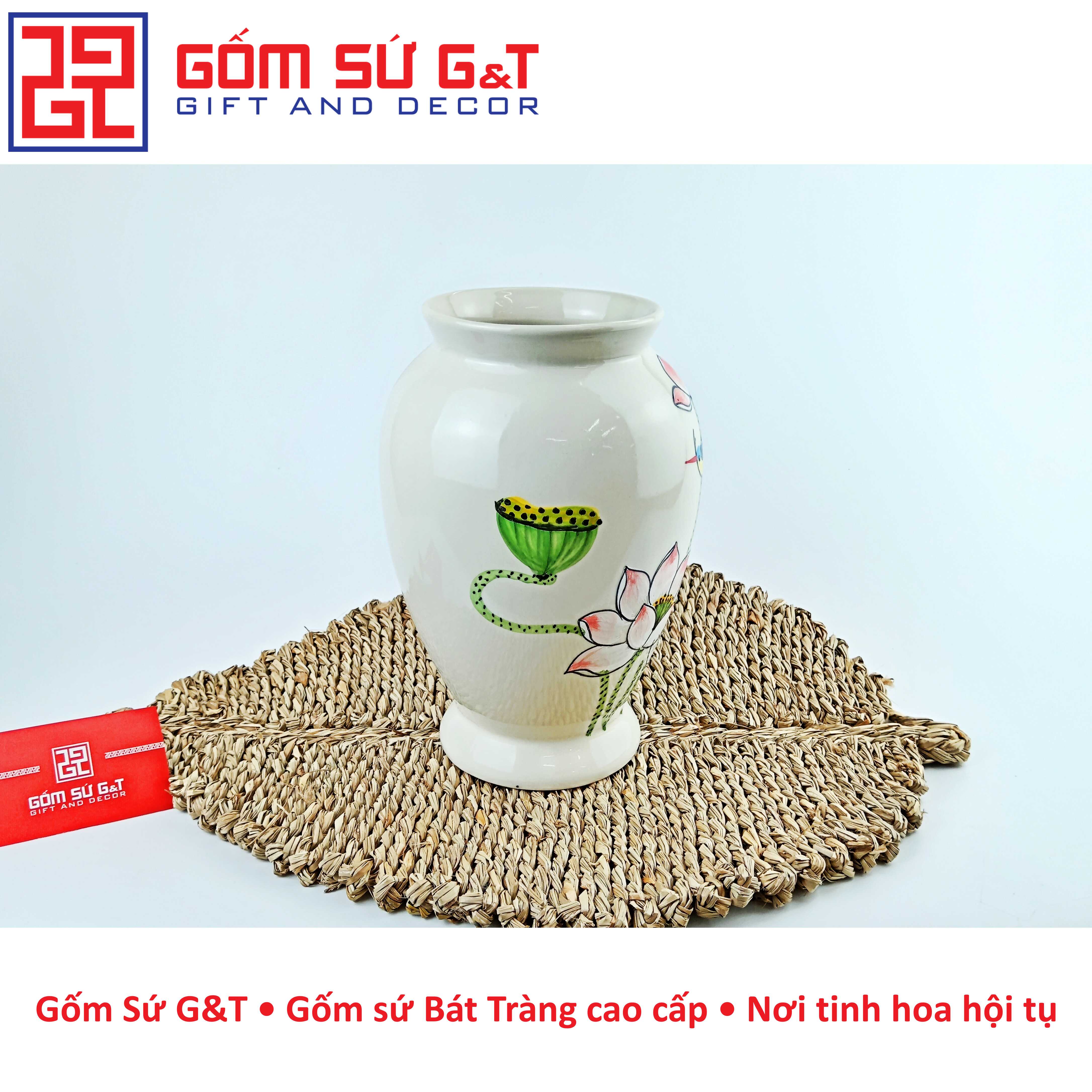 ✨Lọ hoa dáng đùi dế vẽ sen hồng Gốm Sứ G&T