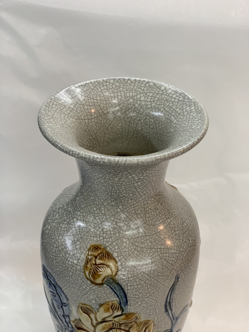 Lục bình sen men rạn đáp nổi Bát Tràng
