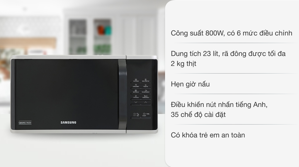Lò vi sóng Samsung MS23K3513AS dung tích 23L công suất 800W sản xuất Malaysia chính hãng chuẩn Korea