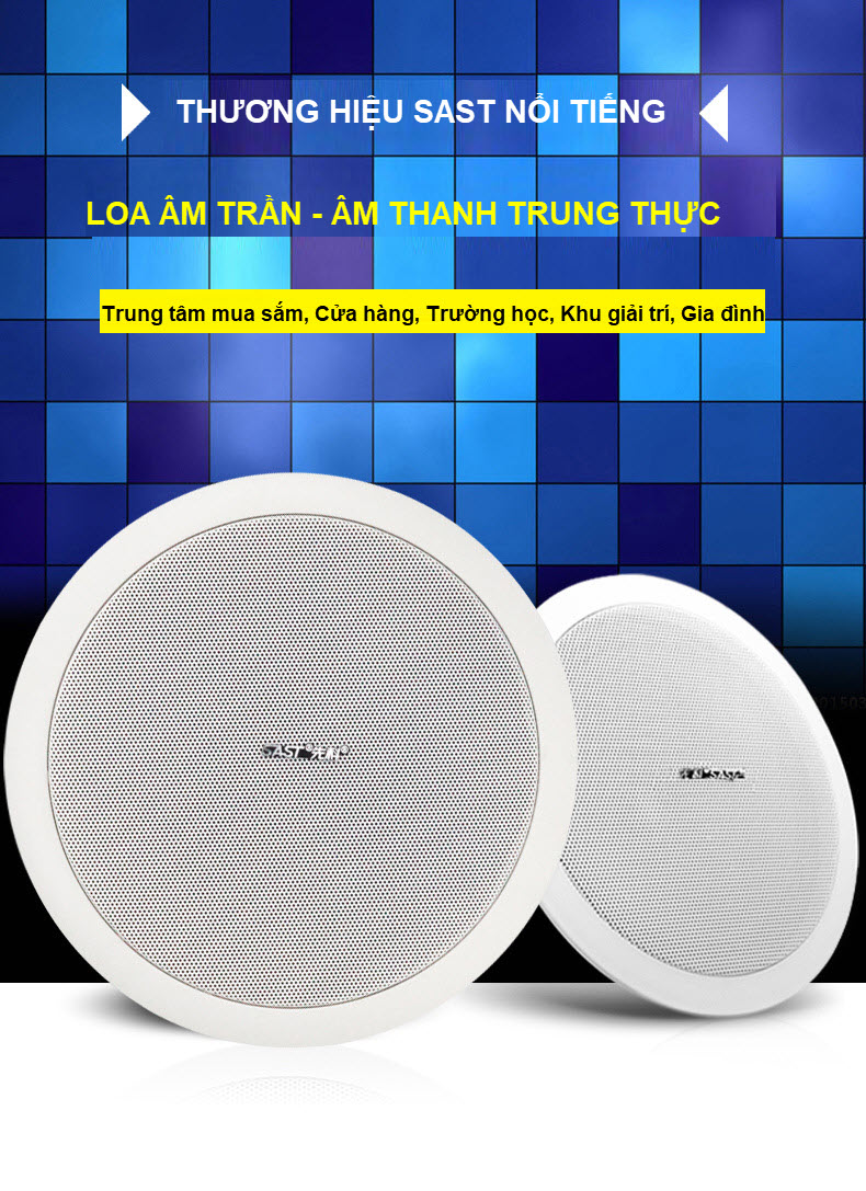 Mua tại TiktokLoa Âm Trần SAST Công Suất 6W Kích Thước 5 inch Mặt Tròn Lưới Mịn PD - Hàng Nhập Khẩu Loa âm trần SAST có thiết kế đẹp mắt với vỏ loa kim loại hình tròn, tinh tế, màu sắc nhẹ nhàng thích hợp với nhiều không gian nội thất. Loa thường được lắp đặt trên trần nhà hoặc vào hốc tường không gây ảnh hưởng tới vẻ đẹp của kiến trúc căn phòng. Bạn có thể dễ dàng lắp đặt cũng như thiết lập công suất một cách đơn giản và dễ dàng. Loa âm trần SAST Loa âm trần phù hợp lắp đặt cho Spa , quán trà sữa , quán café, thẩm mĩ viện , phòng tập gym-yoga , Trường học, biệt thự….