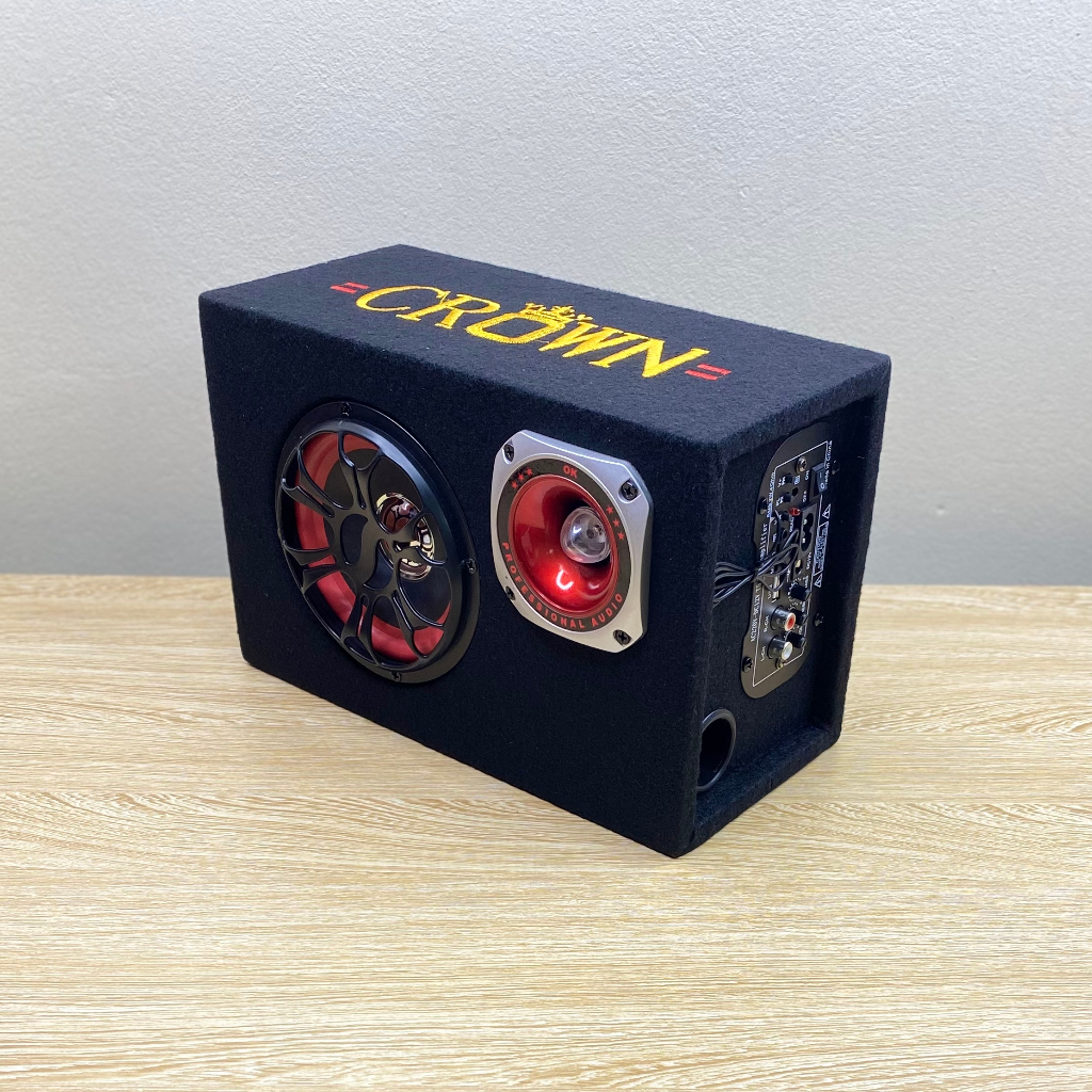 Phía trước loa nghe nhạc bluetooth Crown 6 vuông là thiết kế của loa bass và treb với kiểu dáng thời trang, tạo nên điểm nhấn bắt mắt cho cái nhìn tổng quan của loa. Phía bên hông là bảng mạch loa với các nút điều chỉnh được trang bị tỉ mỉ, dễ sử dụng. Loa nghe nhạc Crown 6 vuông có chất lượng âm thanh hay: