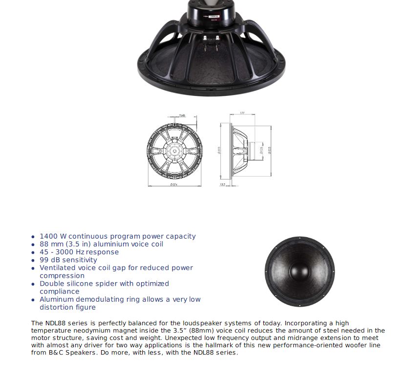 LOA RỜI 4 TẤC B&C Xuất xứ : ITALIA Dòng NDL88 hoàn toàn cân bằng cho các hệ thống loa ngày nay. Việc kết hợp nam châm neodymium nhiệt độ cao bên trong cuộn