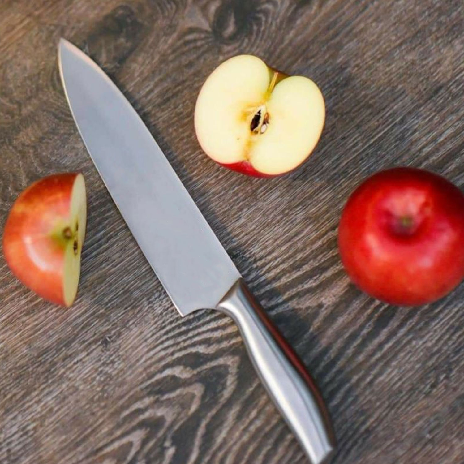 - 1 dao bếp trưởng 20 cm - 1 dao cắt bánh mì 20 cm - 1 dao thái lát 19 cm - 1 dao bếp đa năng 11,5 cm - 1 dao tỉa 9