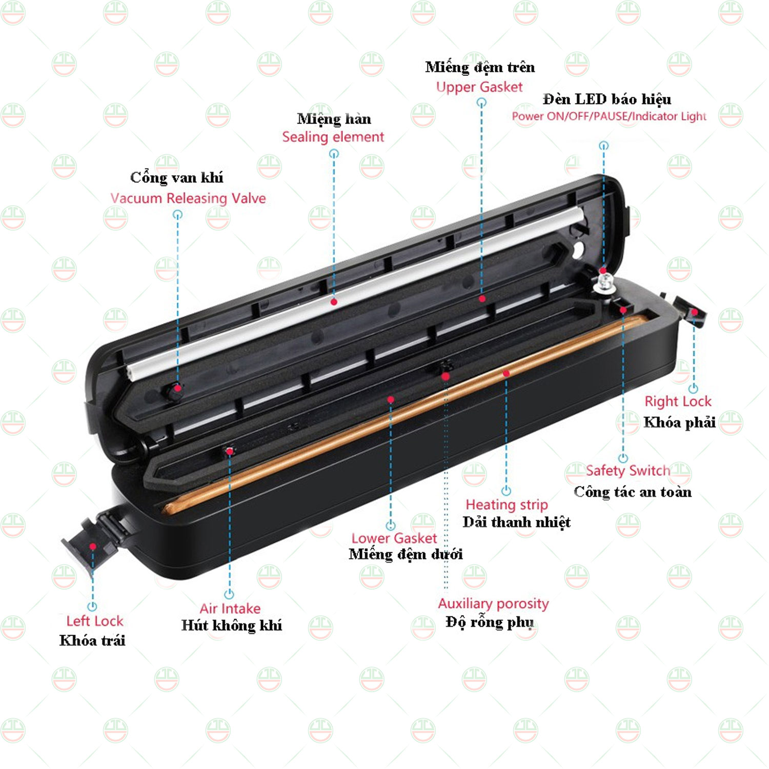 Đặc điểm nổi bật: - 5 nhiệt độ hàn miệng (niêm phong) miệng túi tương thích theo độ dày của túi sử dụng - Thiết kế chống thấm nước, ngắn chất lỏng xâm nhập vào