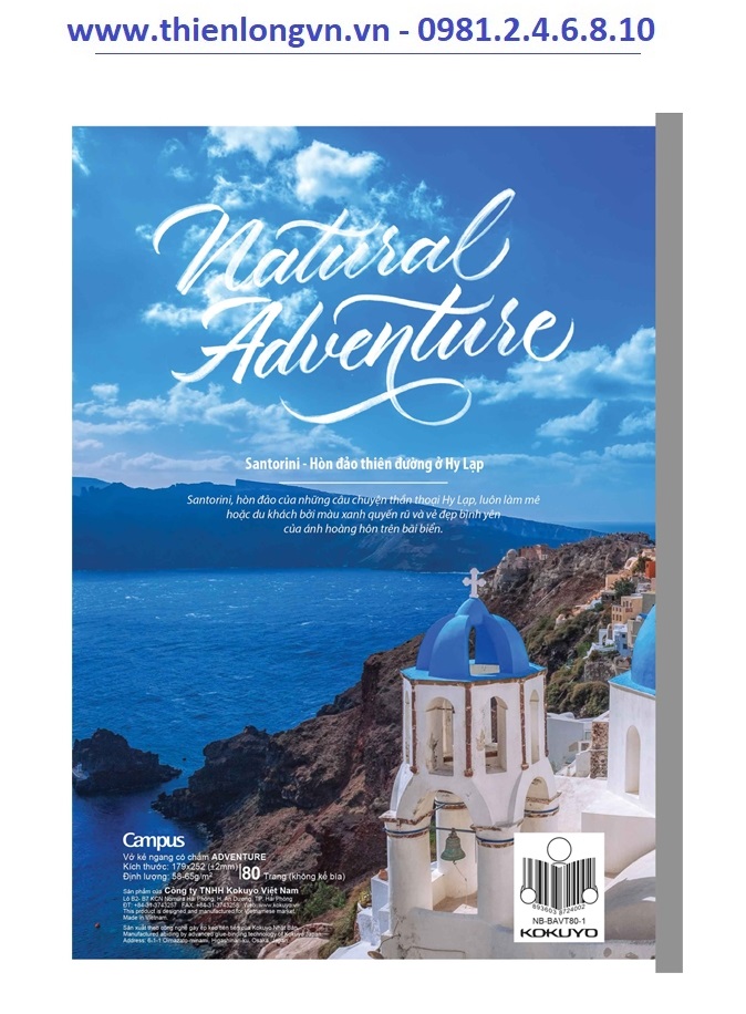 Vở kẻ ngang Adventure 120. Thiết kế độc quyền của Campus Kích thước: Khổ B5 - 179 x 252mm Định lượng: 58-65 g/m2 Độ trắng: ISO 95 Gáy vở được đóng theo công nghệ ép