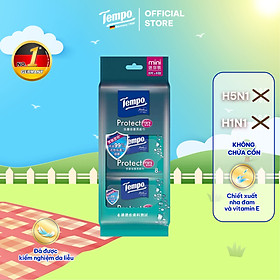 Khăn giấy ướt Mini cao cấpTempo với tính năng diệt khuẩn đến 99%, vi khuẩn gây bệnh H5N1 và H1N1 và các loại vi khuẩn khác, được sản xuất theo công nghệ tiên tiến và