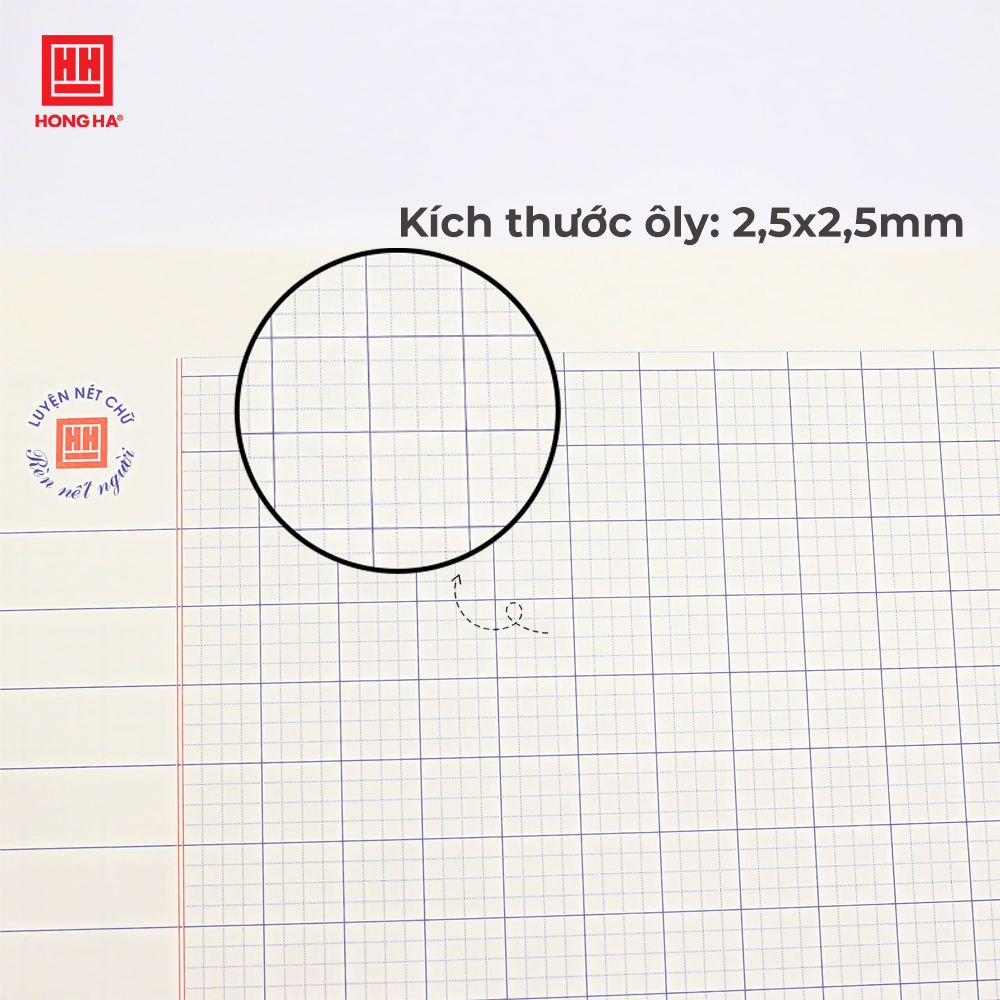 - Dòng kẻ: 4 ô ly vuông (2.5 x 2.5) mm