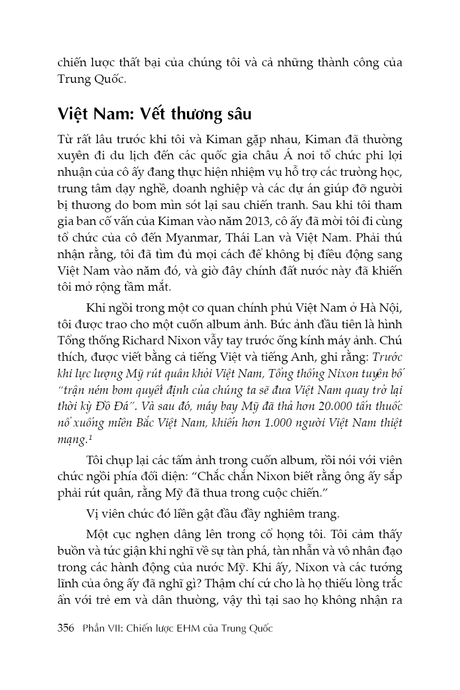Cùng với sự thay đổi nhận thức này, tác giả John Perkins cũng làm rõ sự khác nhau của bốn trụ cột trong chiến lược EHM (nợ nần, nỗi sợ hãi, lo lắng về sự thiếu thốn và chia để trị) của Mỹ và Trung Quốc. Sức hấp dẫn của Con đường Tơ lụa mới - với khả năng kết nối một mạng lưới đối tác thương mại toàn cầu rộng lớn - đã khiến các quốc gia mù quáng trước thực tế rằng những mối liên kết như vậy có thể được sử dụng để chống lại chính họ. Lời kêu gọi chấm dứt tình trạng nghèo đói thông qua cơ sở hạ tầng được tài trợ bằng nợ đã thao túng chính trị trong bí mật và tham nhũng của Trung Quốc.