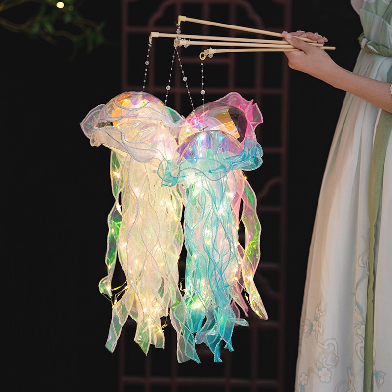 - Lồng đèn con sứa có thể sử dụng làm đồ trang trí nhà cửa, bộ sưu tập, quà tặng, đèn lồng cầm tay, đạo cụ chụp ảnh, đồ chơi trung thu cho bé