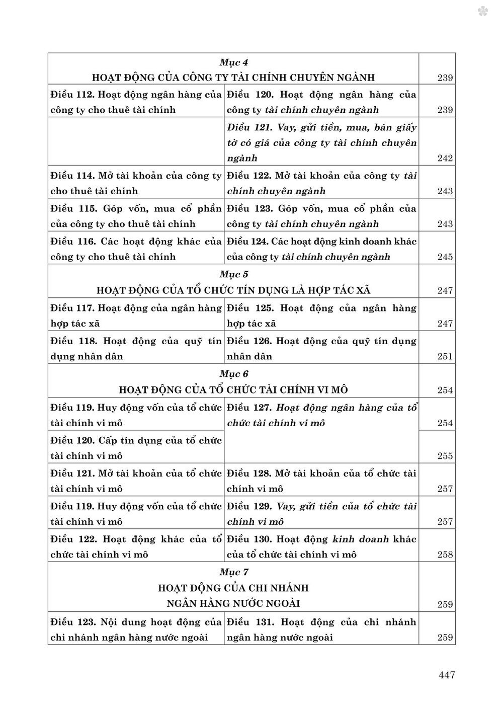 Cuốn sách giúp các tổ chức tín dụng, chi nhánh ngân hàng nước ngoài, tổ chức mua bán, xử lý nợ,... và người dân nhận diện nhanh, chính xác những nội dung mới, nội dung được sửa đổi, bổ sung của Luật, góp phần triển khai thi hành Luật được hiệu quả.