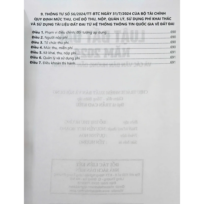 - THÔNG TƯ SỐ 56/2024/TT-BTC NGÀY 31/7/2024 CỦA BỘ TÀI CHÍNH QUY ĐỊNH MỨC THU, CHẾ ĐỘ THU, NỘP, QUẢN LÝ, SỬ DỤNG PHÍ KHAI THÁC VÀ SỬ DỤNG TÀI LIỆU ĐẤT ĐAI TỪ HỆ THỐNG THÔNG TIN QUỐC GIA VỀ ĐẤT ĐAI