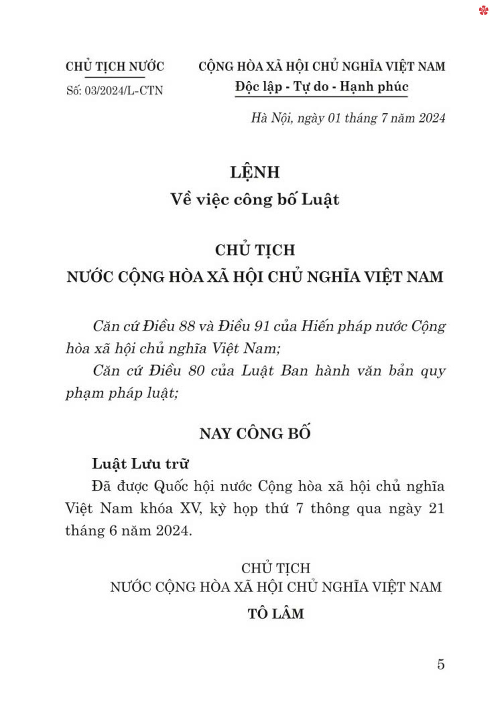 ✨Luật lưu trữ năm 2024 - bản in 2024