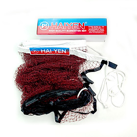 - Thương hiệu: Hải Yến. - Xuất xứ: Việt Nam. - Lưới cầu lông Hải Yến chính hãng được làm từ sợi tổng hợp, có mắt lưới đều, không xô và viền chạy đều. -