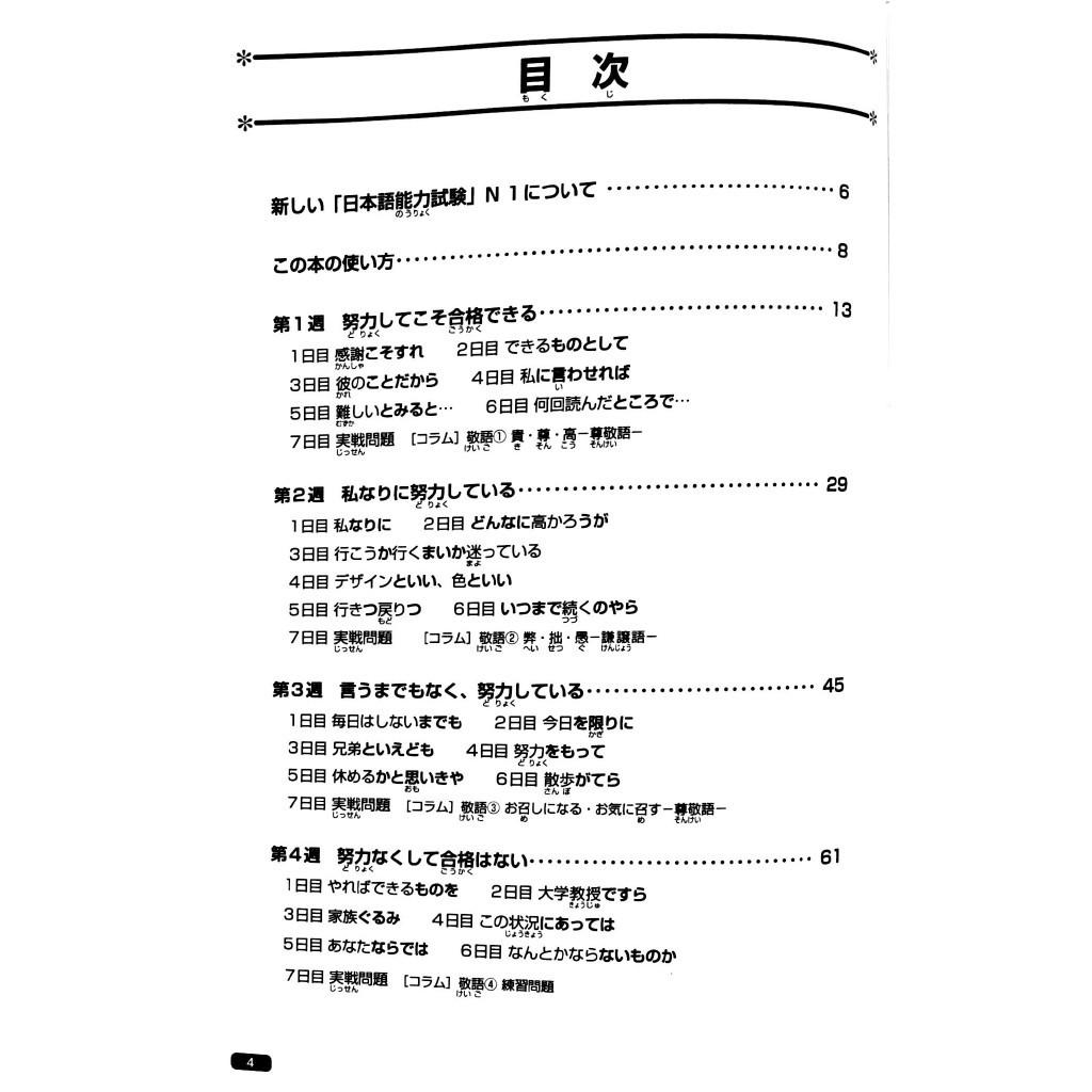 Luyện Thi Năng Lực Nhật Ngữ N1 – Ngữ Pháp Luyện thi Năng lực Nhật ngữ N1 gồm 5 quyển: Hán tự (Kanji), Từ vựng (Goi), Đọc hiểu (Dokkai), Nghe hiểu (Choukai) và Ngữ pháp (Bunpou). Đây là một tựa sách học tiếng Nhật hàng đầu trong hệ thống phân phối sách Kinokuniya lớn nhất Nhật Bản. Bộ sách này giúp những bạn chuẩn bị tham gia Kỳ thi năng lực Nhật ngữ JLPT nắm được những nội dung kiến thức cần phải có trong năng lực Nhật ngữ - trình độ N1 một cách nhanh chóng, hiệu quả và tổng quát nhất trong khoảng thời gian từ 4 đến 6 tuần.