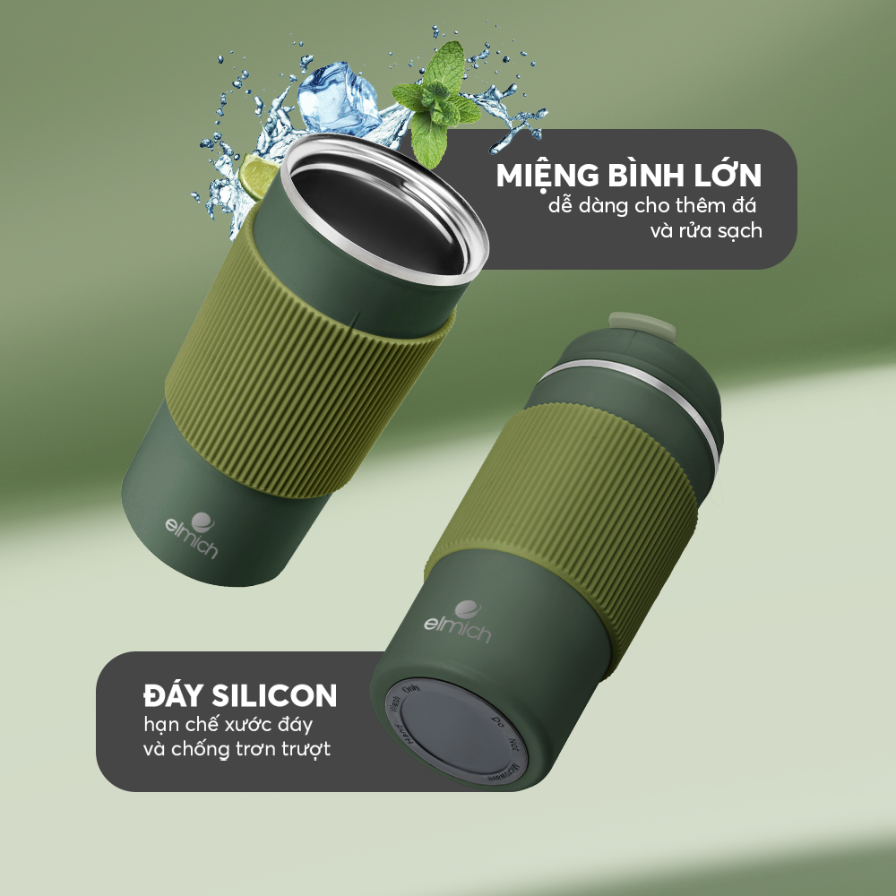 Cốc giữ nhiệt inox 304 Elmich EL8345 dung tích 480ml, Hàng chính hãng, lớp silicone chống trượt - JoyMall