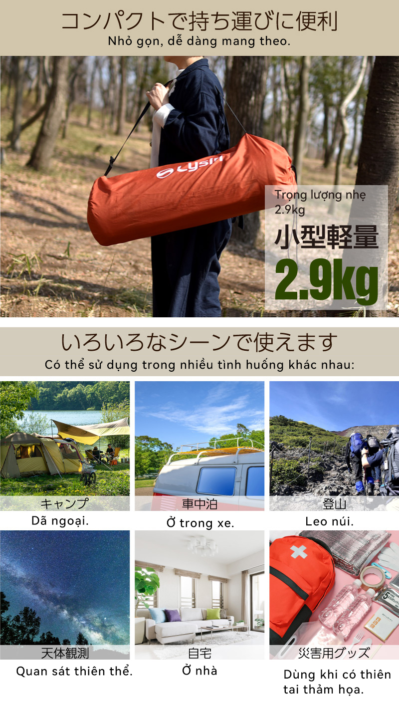 ✨Lysin - đệm nằm dã ngoại (roonjgcm dày 8cm, chất liệu da lộn) tự bơm hơi thoảng mái chống thấm nước cắm trại ngoài trời, picnic du lịch camping có thể liên kết với nhau