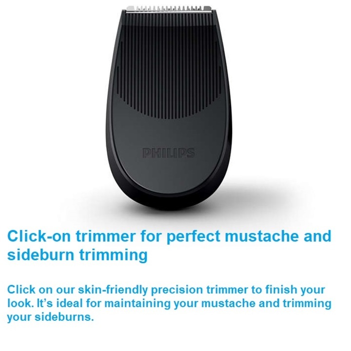 TÍNH NĂNG NỔI BẬT: Lưỡi cạo SteelPrecision Đầu cạo linh hoạt 360 độ Cảm biến bộ điều hợp nguồn Đầu tỉa tóc mai và ria mép tích hợp THÔNG TIN CHI TIẾT: Máy cạo râu