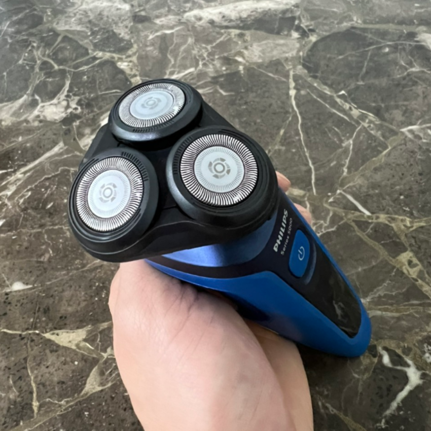 - Đầu hoàn toàn linh hoạt xoay 360° đảm bảo tiếp xúc sát với da giúp bạn cạo râu nhanh và sát kể cả ở vùng cổ và quai hàm
