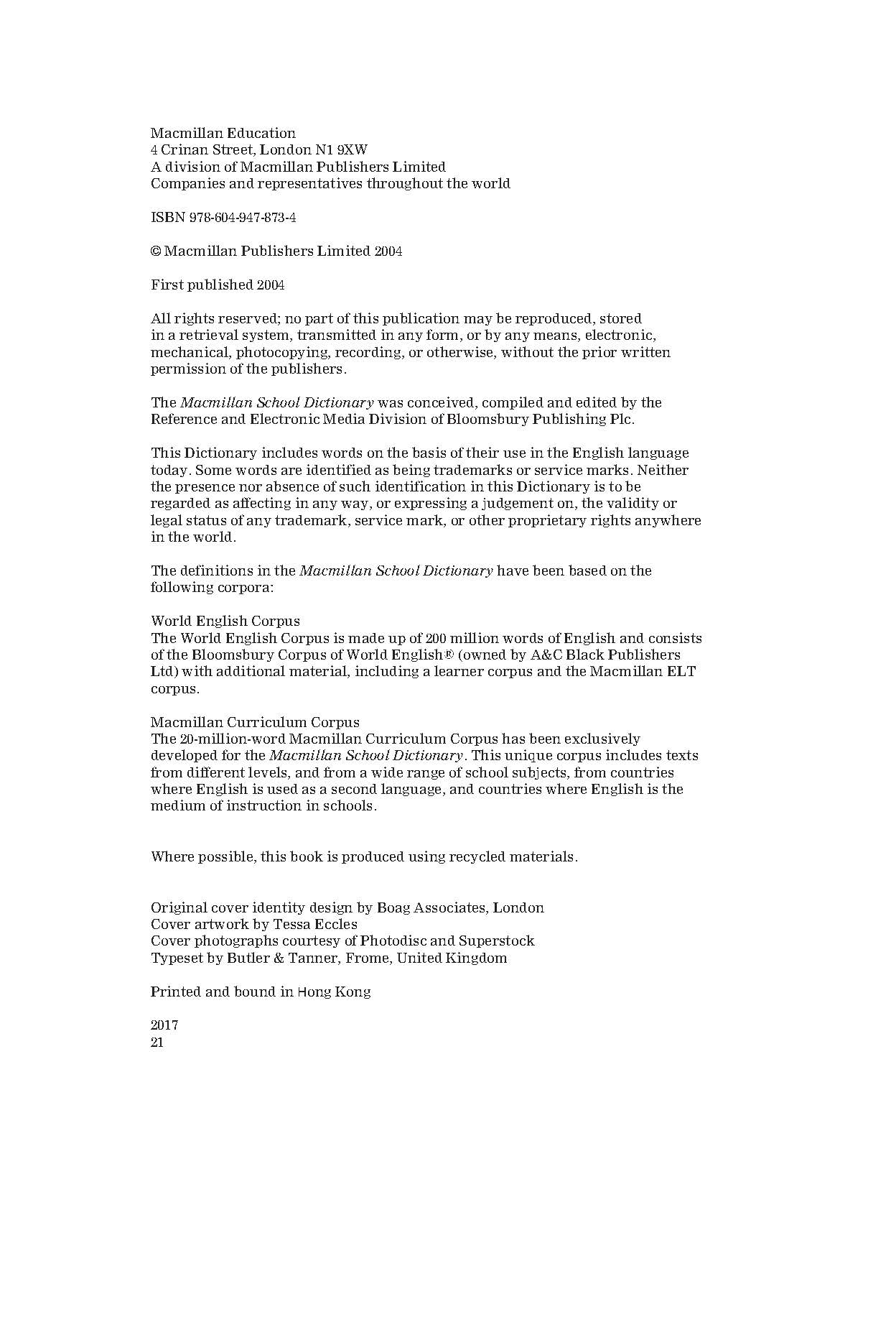 Macmillan School Dictionary is a copyrighted dictionary, developed cooperatively by the prestigious Macmillan Publishers and Dai Truong Phat JSC, Ho Chi Minh University of Pedagogy Publishing House, and many top-class language specialists of Vietnam over the years.