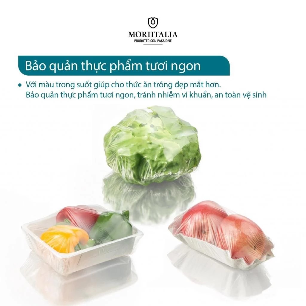 ĐẶC ĐIỂM NỔI BẬT: - Khả năng tái sử dụng tuyệt vời giúp tiết kiệm chi phí so với các loại màng bọc thực phẩm thông thường - Túi bọc thực phẩm nilong co giãn