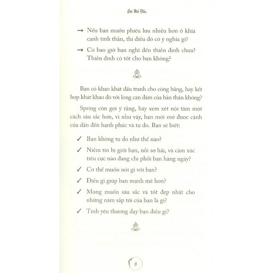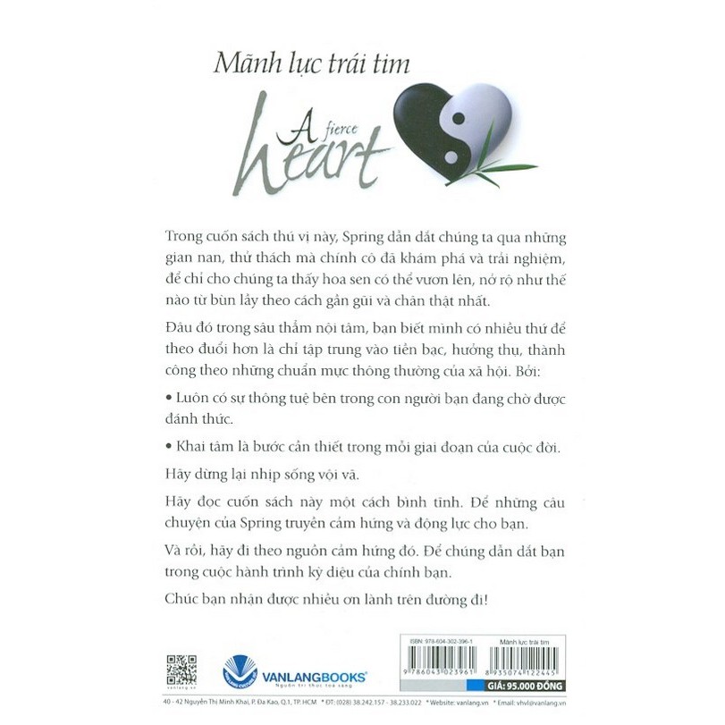 Mãnh Lực Trái Tim Trong cuốn sách thú vị này, Spring dẫn dắt chúng ta qua những gian nan, thử thách mà chính cô đã khám phá và trải nghiệm, để chỉ cho chúng ta thấy hoa sen có thể vươn lên, nở rộ như thế nào từ bùn lầy theo cách gần gũi và chân thật nhất. Đâu đó trong sâu thẳm nội tâm, bạn biết mình có nhiều thứ để theo đuổi hơn là chỉ tập trung vào tiền bạc, hưởng thụ, thành công theo những chuẩn mực thông thường của xã hội. Bởi: Luôn có sự thông tuệ bên trong con người bạn đang chờ được đánh thức. Khai tâm là bước cần thiết trong mỗi giai đoạn của cuộc đời. Hãy dừng lại vội vã. Hãy đọc cuốn sách này một cách bình tĩnh. Để những câu chuyện của Spring truyền cảm hứng và động lực cho bạn. Và rồi, hãy đi theo nguồn cảm hứng đó. Để chúng dẫn dắt bạn trong cuộc hành trình kỳ diệu của chính bạn. Chúc bạn nhận được nhiều ơn lành trên đường đi!