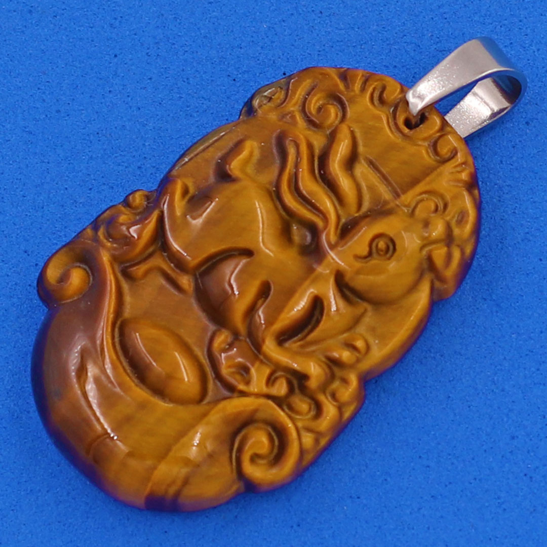 Tên sản phẩm: Mặt dây chuyền phật bản mệnh 12 con giáp đá mắt hổ 5A hợp mệnh Thổ và Kim Thiết kế mặt dây chuyền phong thủy sang trọng may mắn mang lại vẻ