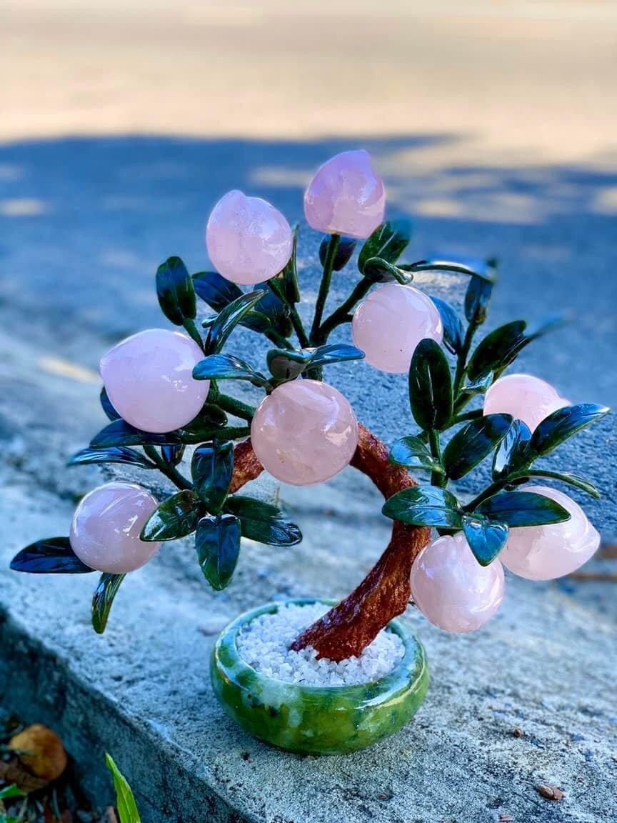 Cây Đào Tiên bằng đá tự nhiên Thạch Anh Hồng 9 Quả