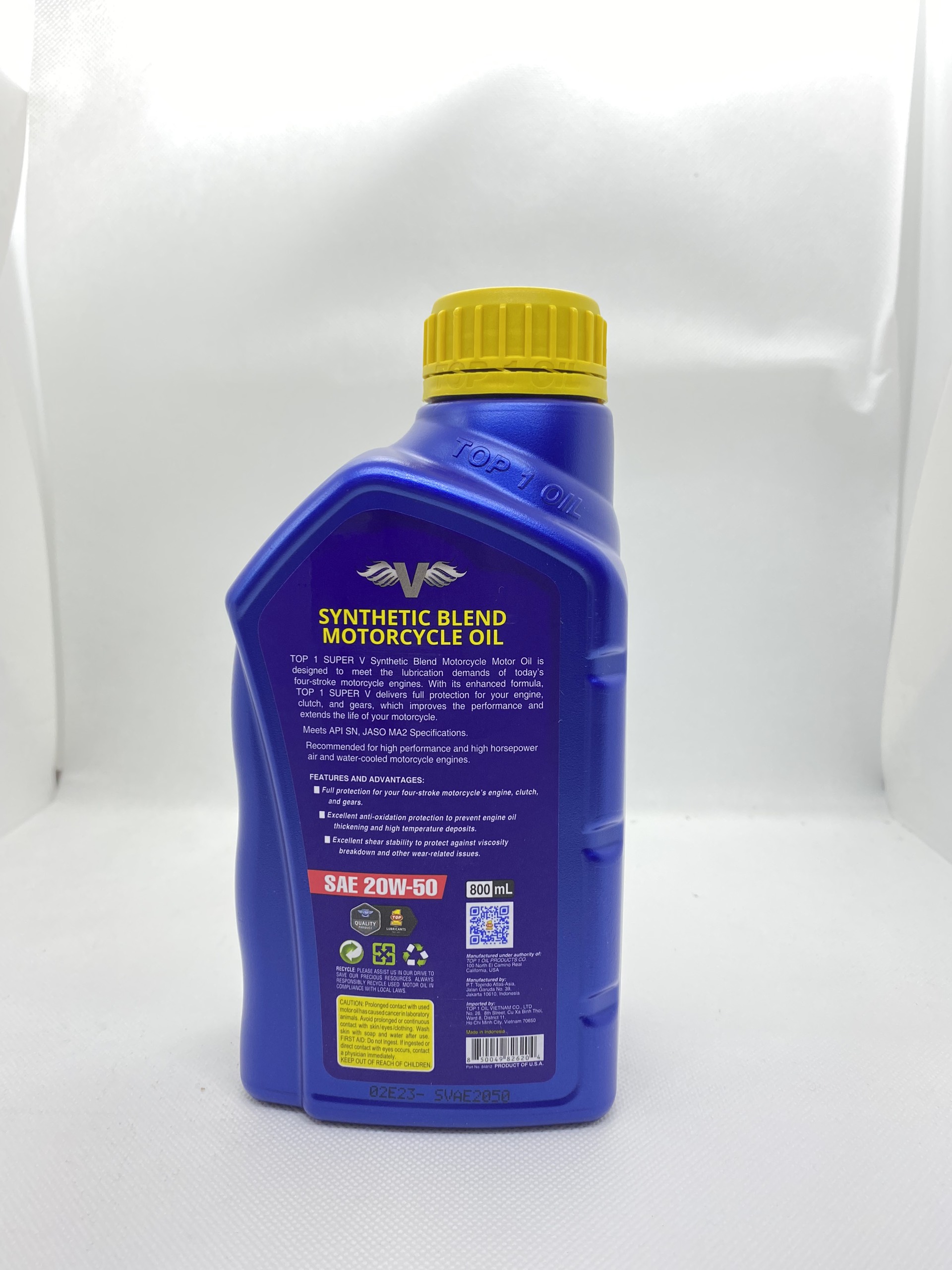 Nhớt TOP1 Super V 20W50 800 ml XE SỐ Sản xuất bởi TOP Oil PRODUCTS COMPANY Sản phẩm nhập khẩu từ – INDONESIA Dầu Nhớt TOP1 Super V 20W50 là dầu bán tổng hợp cao