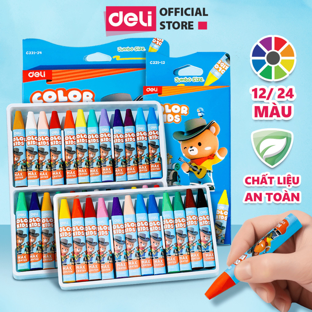 Màu sáp dầu học sinh Colorkids 12/24 màu Deli- Sáp màu dầu siêu mịn, màu sắc tươi sáng, an toàn ít mùi, tô màu mỹ thuật EC221-12/24 TÍNH NĂNG SẢN PHẨM: ️Chất liệu an toàn,