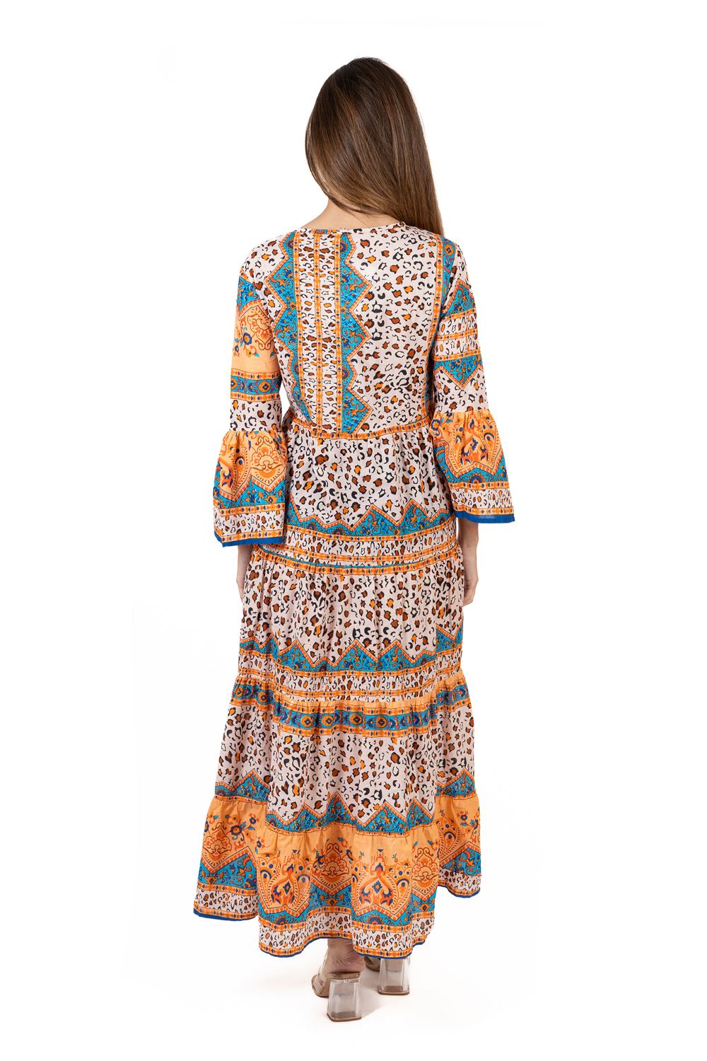 Maxi Boho Cotton Isla Bonita, chất liệu cotton cao cấp, mềm mại. Họa tiết thổ cẩm ấn tượng. Phom xòe rộng. Dài đầm 130cm (45x130) Phù hợp đi biển, dạo phố, công sở, hoặc dự